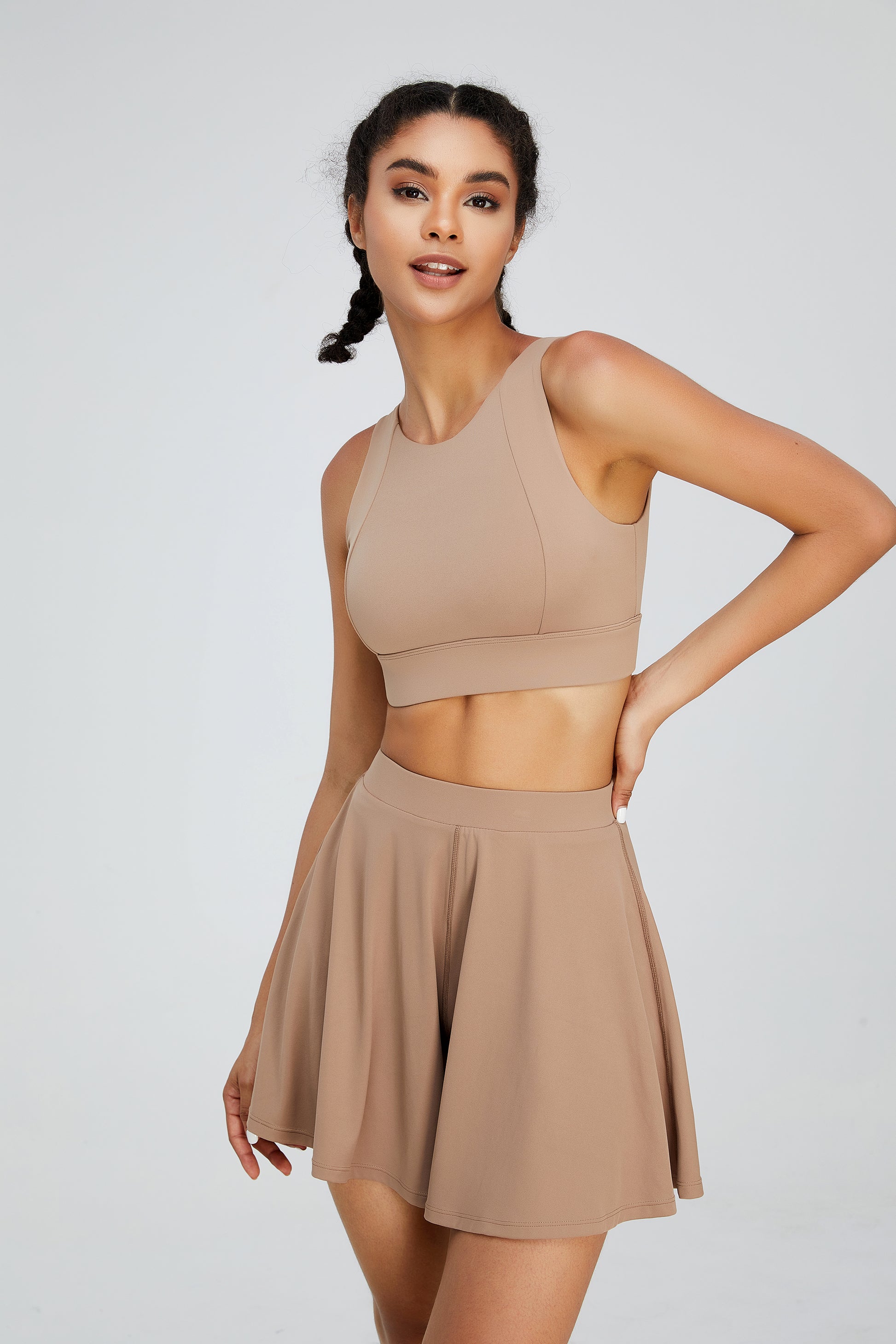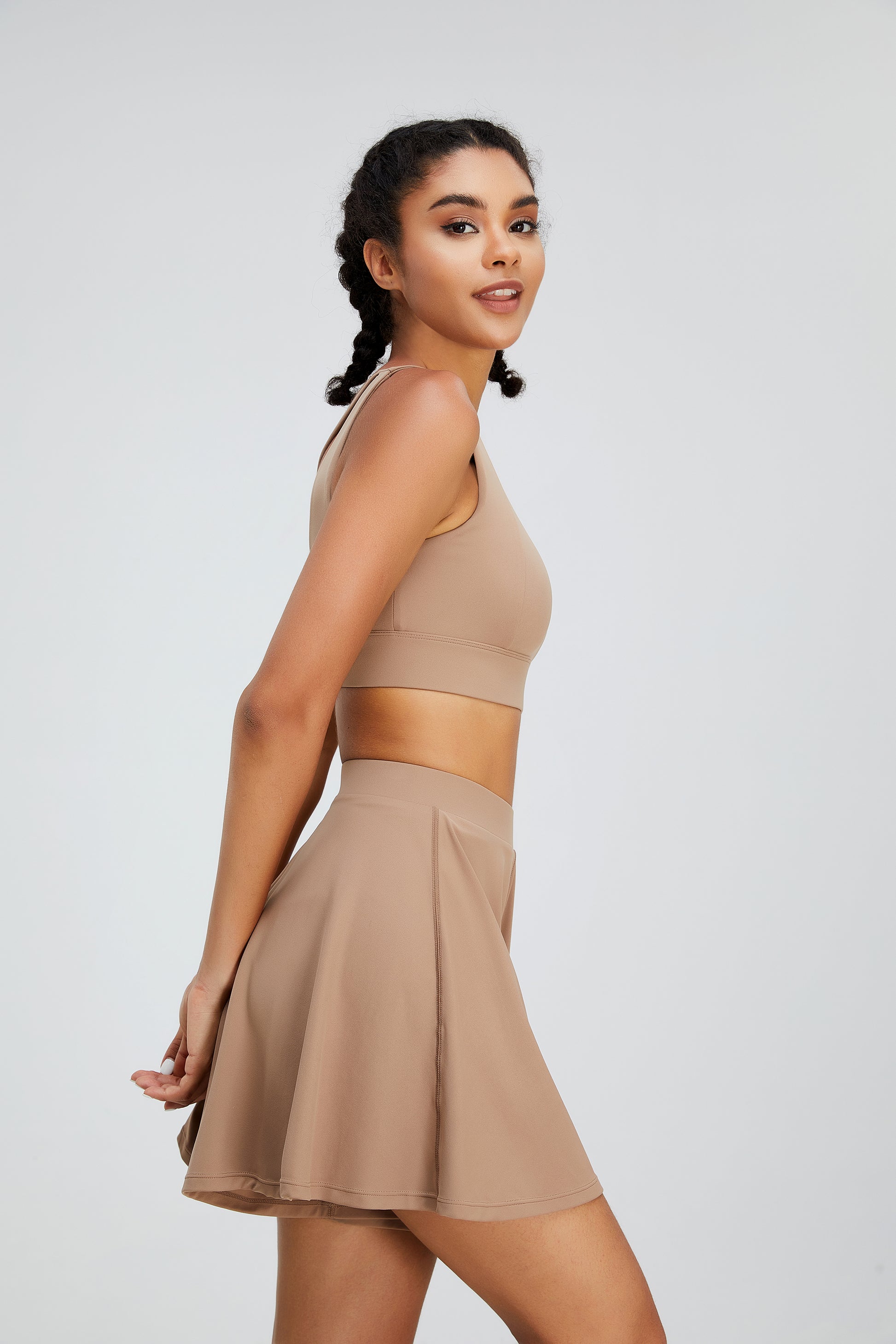 Where elegance meets performance, the Coffee Pickle Workout Set from Sherox offers a perfect balance of support, comfort, and style. Designed for active women who demand versatility, this coordinated set includes a sculpted bra top and a flowy skort, ideal for workouts, casual outings, or sporty adventures like tennis, golf, or pickleball.